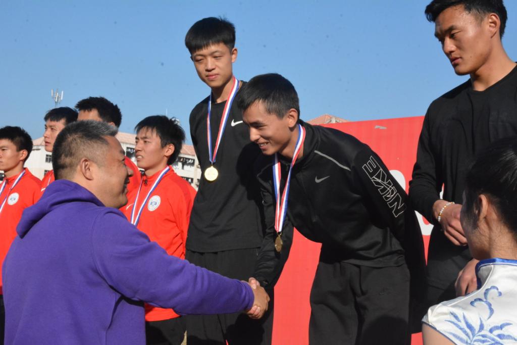经过八个单元的比赛,11月11日下午,2020年湖南省大学生田径运动会闭幕式暨颁奖仪式在我校田径场举行。湖南省教育厅体育卫生与艺术处、湖南省学生体育协会、大赛组委会相关领导及本次比赛仲裁委员出席闭幕式。体育学院副院长郭献中宣布获奖情况,在主席台前排就座的领导嘉宾为获奖代表颁奖。本次比赛,我校代表队喜获大学组男子团体总分第一、男女团体总分第二及女子团体总分第三。