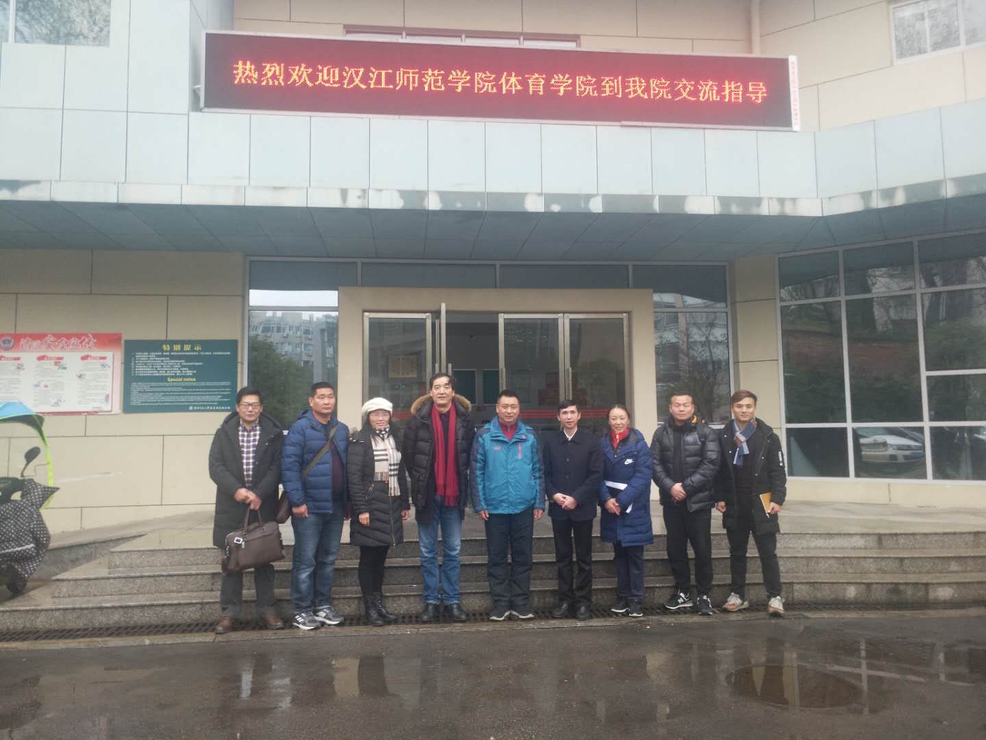 (通讯员 陈俊豪)1月11日,汉江师范学院体育学院教师代表在刘宏的带领下来到我院考察调研。我院院长汤长发、副院长刘花云、学工办主任夏禹、教务办主任彭豪、武术教研室教师雷军蓉共同欢迎汉江师范学院体育学院的到来,并互相交流学习。