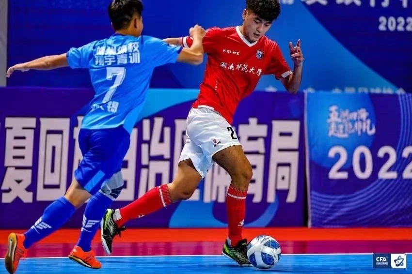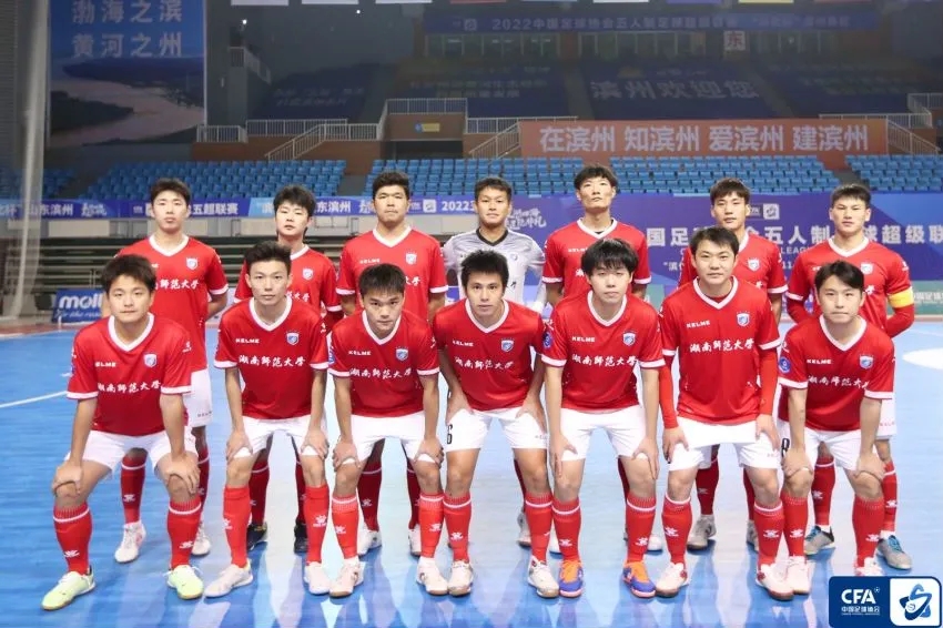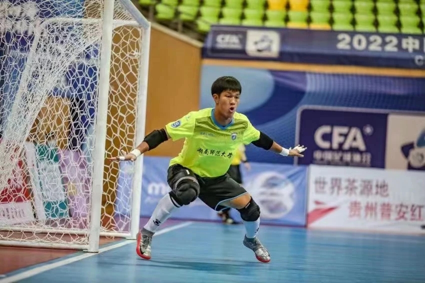 在刚刚结束的 2022中国足球协会五人制足球超级联赛 中,湖南师范大学男子足球队学子以高水平运动员顽强拼搏的精神,精湛的技术获得了中国国家男子五人制足球队教练组一致认同,我校2018级本科生、2022级硕士研究生 王 博 同学(学术综合保研)再次入选中国国家男子五人制足球队,参加选拔集训,有望代表国家参加 2023年五人制足球亚洲杯预选赛,为国、为校争光;硕士研究生瞿凌浩、唐 祥、张帅、王毕涵、鲁浩楠、谢伟豪、杨 刚、刘 敏、张昕垚 、王博 等同学获批“足球国家一级运动员”。