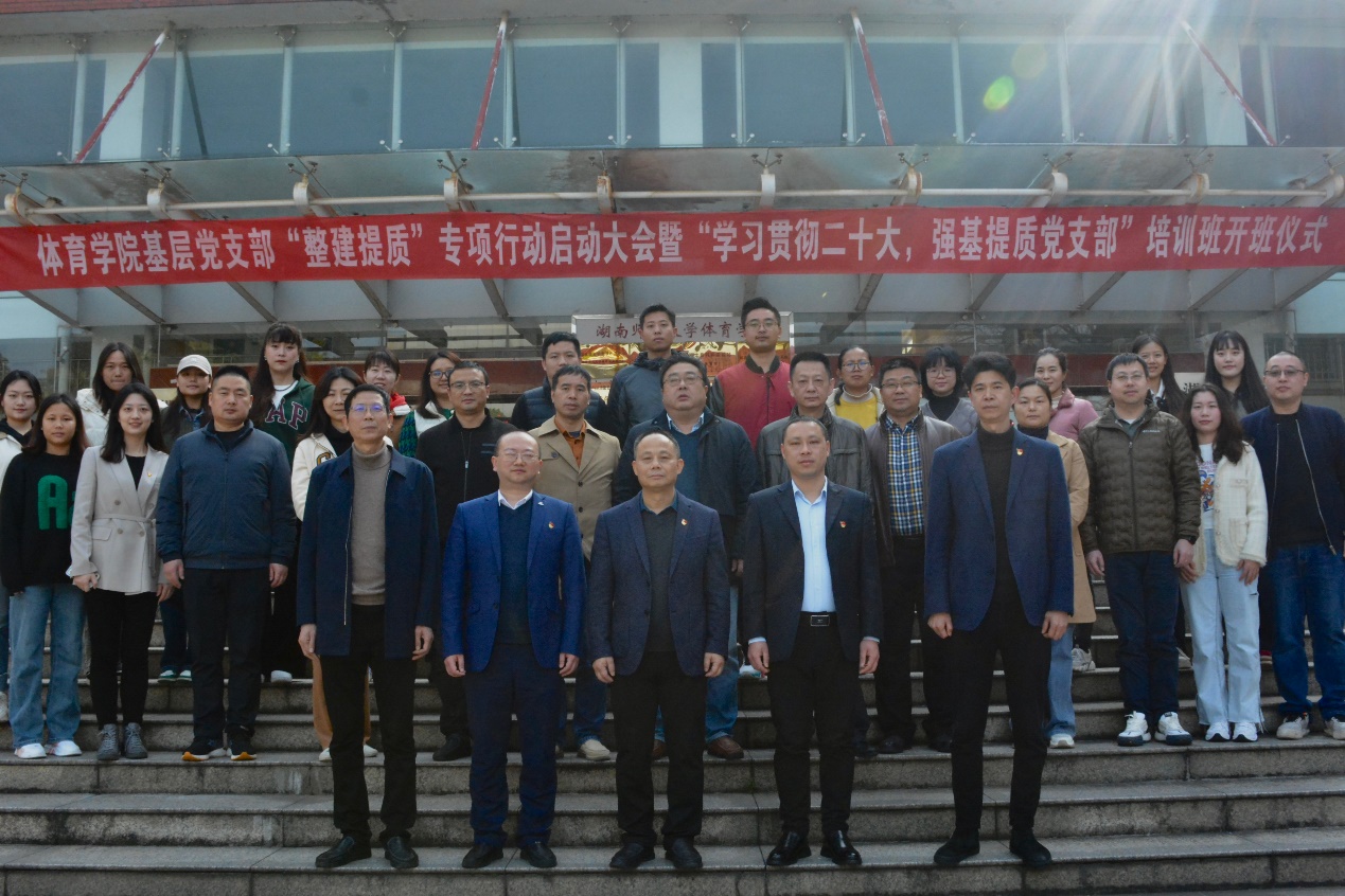 3月5日上午,体育学院在鸿健楼一楼会议室召开基层党支部“整建提质”专项行动启动大会暨“学习贯彻二十大,强基提质党支部”培训班开班仪式。校党校常务副校长、党委组织部副部长袁道香,校党委宣传部副部长杨贤美,校党委组织部组织科科长陈文东,院党委书记李波,院党委副书记李皓出席本次活动。活动由院党委书记李波主持。