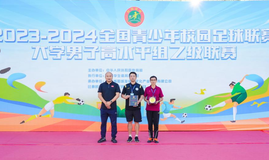 湖南师范大学男子足球队凭借出色的团队配合和坚韧不拔的斗志,在决赛上半场比赛中,曾0:1落后于老牌足球劲旅华南理工大学足球队,在这不利情况下,教练组顶住压力,及时调整场上队员位置和技战术变化,在下半场开始后,队员们凭借顽强的拼搏精神和出色的团队配合,坚决执行技战术变化要求,不断向对手施压和创造进攻机会,终场哨响,湖南师大男子足球队以4:1的大比分反超对手,成功夺得了2023-2024全国青少年校园足球联赛,大学男子高水平组乙级联赛的“冠军”。