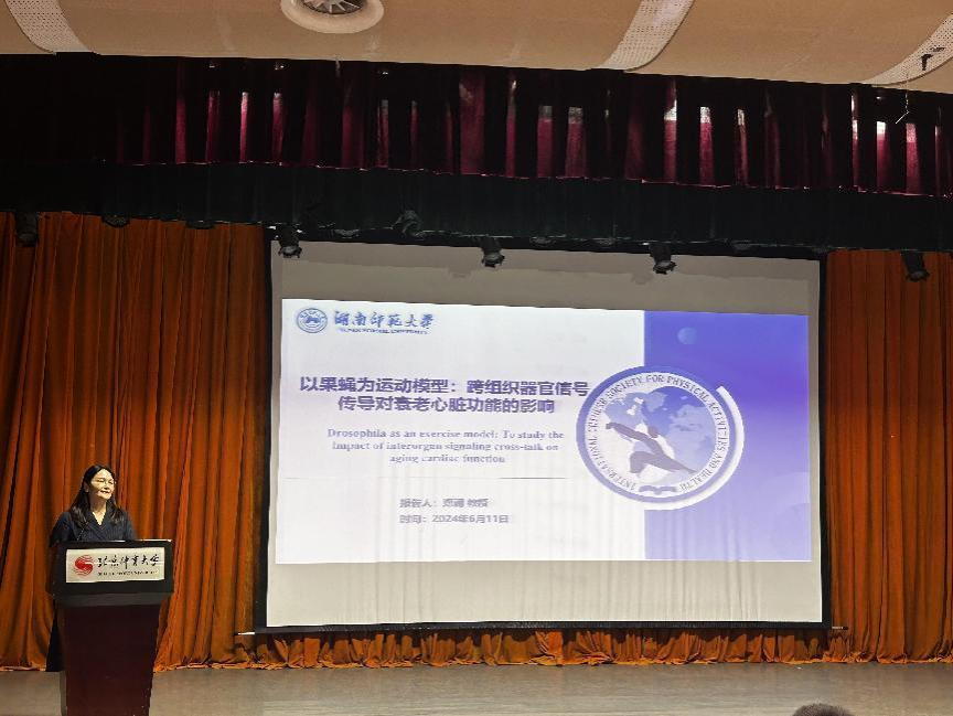 6月11日,我院院长郑澜教授作为特邀嘉宾进行了题为“Drosophila as an exercise model:To study the impact of interorgan signaling cross-talk on aging cardiac function”的专题学术报告。报告介绍了利用果蝇作为模型研究的优势以及实验室现有遗传杂交技术,介绍了实验室平台建设和各种实验方法探究,以及最新研究成果:跨组织器官信号传导调节衰老心脏功能的研究——运动激活中枢dSir2/cyc/Ih信号通路改善缓慢性心律失常。报告从微观层面阐释了体育运动与器官之间信息传递的联系以及运动改善疾病的相关分子机制研究。