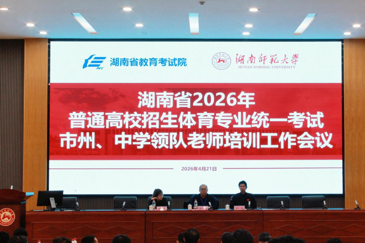 (通讯员蒋晓晨杨平文萱)4月21日晚,湖南省2026年普通高校招生体育类专业统一考试第五批市州、中学领队教师培训会议在我院召开。省教育考试院普招处副处长谢红深、我院党委副书记李皓出席会议。会议由我校招生与就业指导处考务科科长周凌月主持。