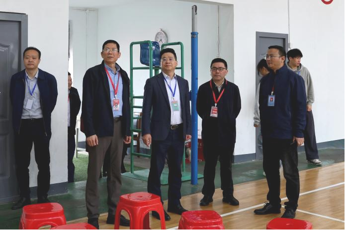 曹文才一行深入体育馆、排球馆、田径场等考试场地,实地检查组考工作,听取排球辅项、100米等考试项目工作汇报,重点调研考生服务、考场设施、考务监督及新型考试设备与评分系统的运行情况。他详细了解各项目计分标准,并就计分感应区设置等提出优化意见。在田径考场,他对“电子计时+视频录像”的双重评分模式表示肯定,同时要求进一步优化电计室布局,确保考试期间设备持续稳定运行。