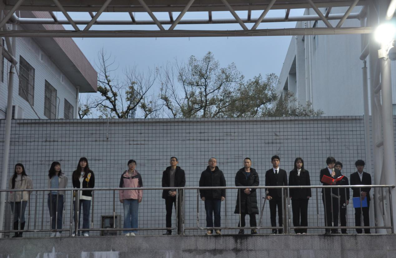 最后,各年级辅导员分年级讲评,升旗仪式圆满结束。