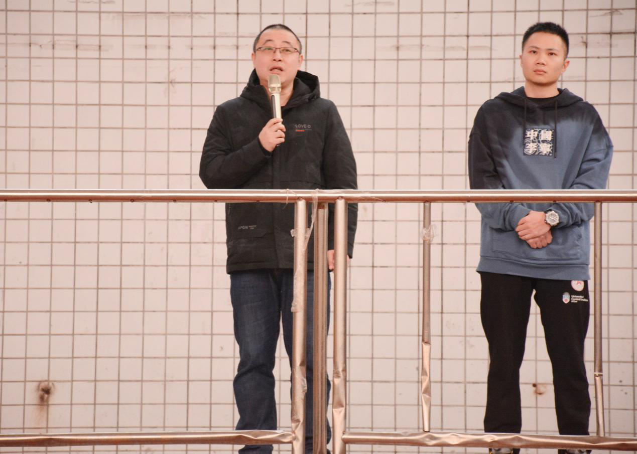 学生代表杨峻诚作国旗下讲话,演讲的主题是“新学期,新目标”,讲述自己的四级备考经验以及自己在学习上的一些方法,并强调新学期要戒骄戒躁,制定新的目标。